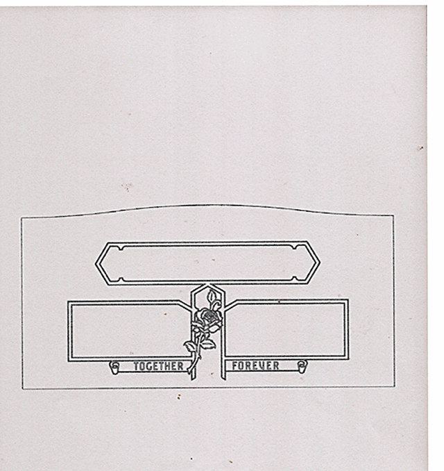 This companion cemetery memorial motif features a stained glass window style epitaph box perfect for a surname followed by two individual epitaph boxes with a beautiful stained glass window rose design and a scroll style banner that reads, "Together Forever". An excellent quote that is illustrated by this design is :“A part of you has grown in me. And so you see, it's you and me together forever and never apart, maybe in distance, but never in heart.”