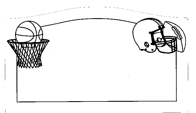 This complete cemetery memorial motif features an epitaph box enhanced in each upper corner by a sports image. On the right side is a basketball and net and on the left side is a football and helmet to pay tribute to that complete sports fan.