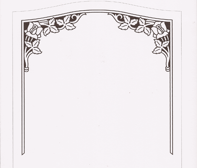 This beautiful cemetery memorial motif features a rose vine in each corner outline by a basic drape style border that goes across the top and down each side.