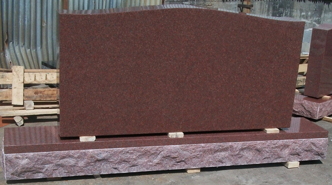 This impressive high quality solid Grade A India Red Granite Monument features a top that is polished on five sides and measures 60 inches left to right, 8 inches thick, and 28 inches tall. The base features a polished top with a polished margin and rough cut front, back, and sides. It measures 84 inches left to right, 14 inches wide, and 8 inches high.