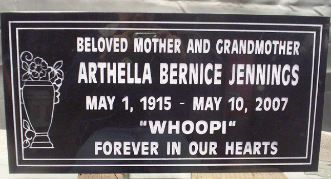 This solid jet black marker features an outline to emphasize the epitaph and a beautiful vase and floral design on the left side. To view our standard design options click on the link or contact us today.