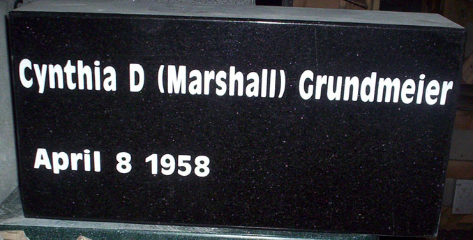 This part two of two companion marker monument set was designed for a set of spouse burial plots and are completed by sandblasting the characters into an antique olive bold font and highlighting them with a white lithichrome stone paint.
