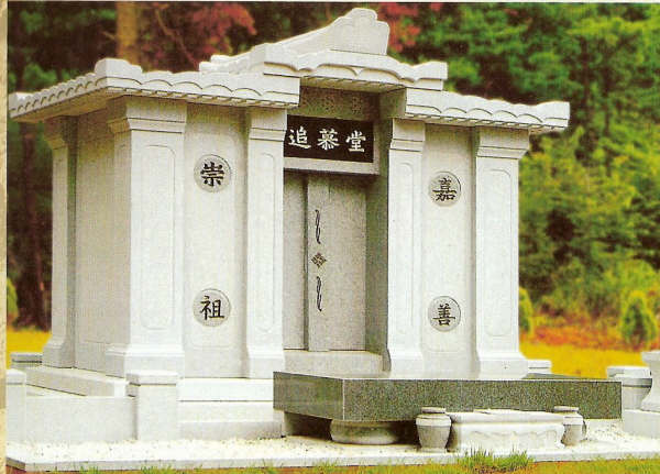 This Korean style cemetery memorial is pictured in G614 granite , but can be ordered in any size or color.