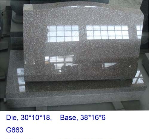 THIS ALL POLISHED SLANT STYLE GRANITE MONUMENT IS COLORED IN G663. THE SIZE OF THIS MONUMENT IS TOP: 30X10X18 / BASE: 38X16X6