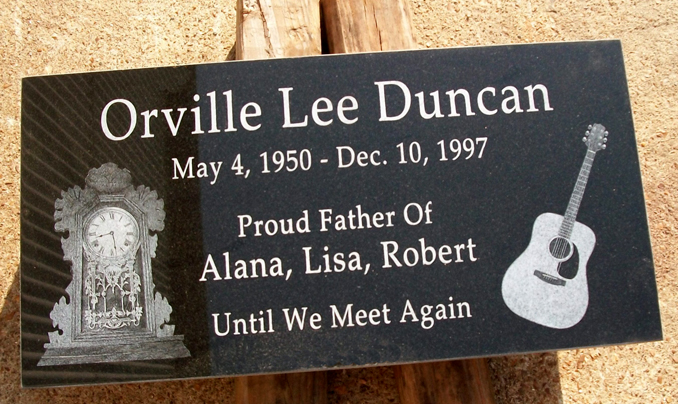 This impressive piece of art also doubles as a tribute to a life well lived by his children. Shown here laser-etched into our high quality solid jet black granite 24x12x4 flat marker. With Laser-Etched Designs you can customize the tribute to your loved one and make it truly one of a kind. For more information about laser etched memorials please contact us.