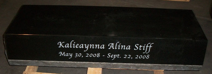 This Jet Black IMG8 Angel Memorial Base is shown here laser-etched with the name and date and showcases the limitless possibilities for design that are available.