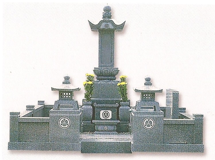 This Japanese style monument is shown in G654 grey granite. Unique design and detailed carvings.