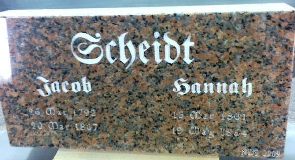 This marker is versatile enough to be used as a double or single memorial. It is shown as a companion stone for a family memorial. The design in simple yet beautiful with the use of an unusual font and white litho paint.