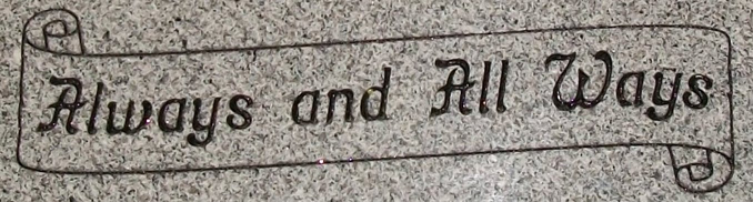 This banner features a custom epitaph shown here engraved into our high quality solid Gray Granite and then enhanced by the addition of a black lithichrome stone paint.
