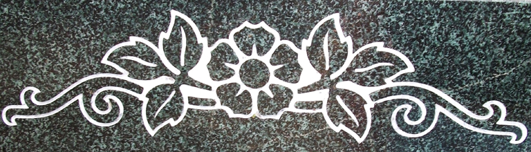 This picture displays a single rose within a leaf and vine border. In this particular instance the border is shown on grey granite monument. However, our top quality engraving is offered on any color stone memorial of the customer choice. This border can be engraved onto any portion of the stone that is desired.
