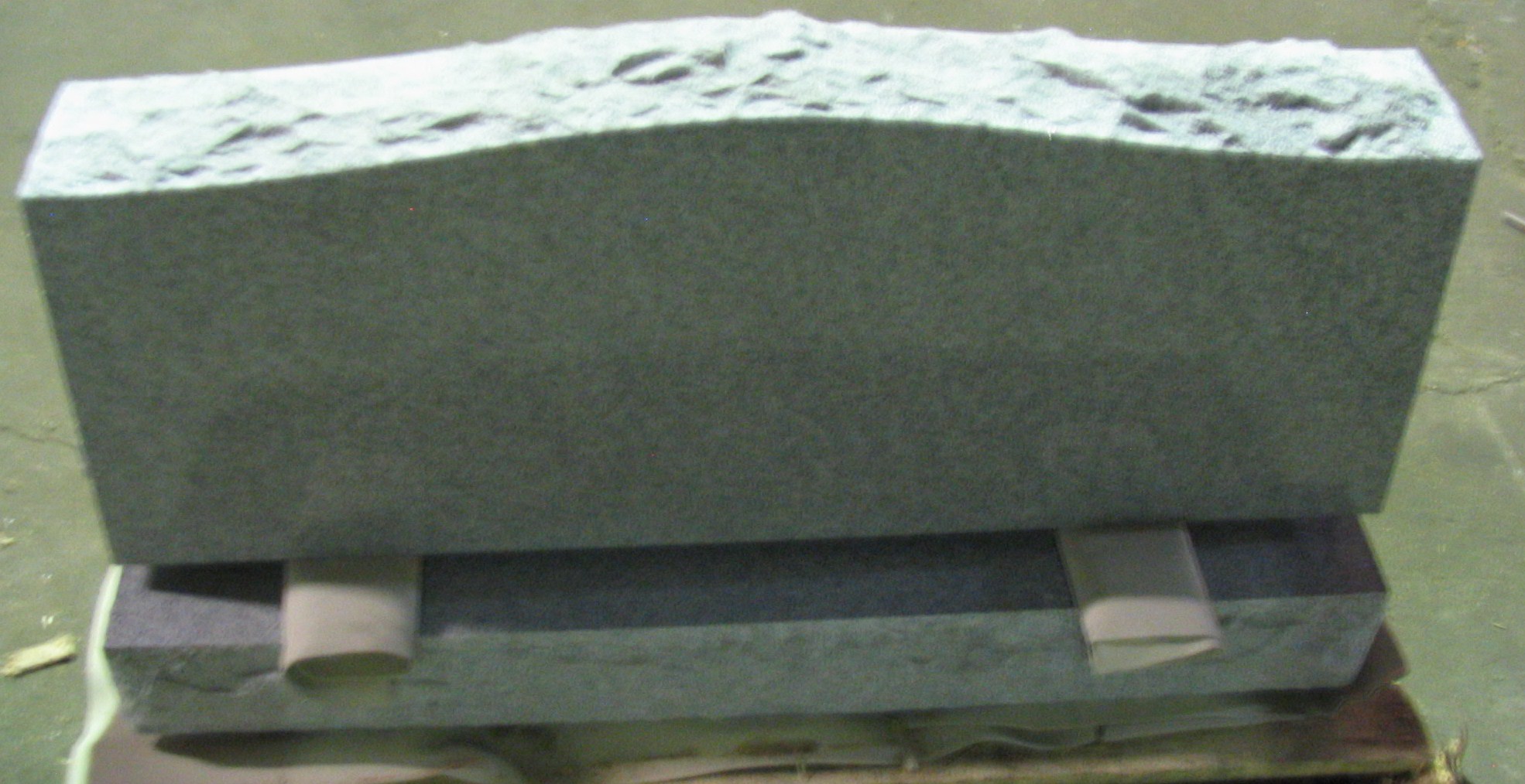 This memorial gravestone slant is shown in our high quality solid G633 grey granite and features a top with face and back that are polished with plenty of room for personalization while the top and sides are rough cut to add texture and character to the monument. The top slant measures 36 inches left to right, 14 inches top to bottom and 10 inches thick. This slant style headstone also includes a base that features a polished top and rough cut front, back, and sides and measures 36 inches left to right, 15 inches wide and 4 inches tall.