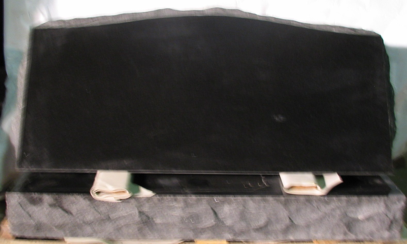 This jet black gravestone slant has a polished face and back side with rock cut sides and rock cut base.