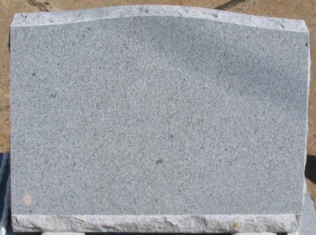 This grave slant is shown in G633 grey granite. It has a polished front, saw cut back and rock cut top and sides.