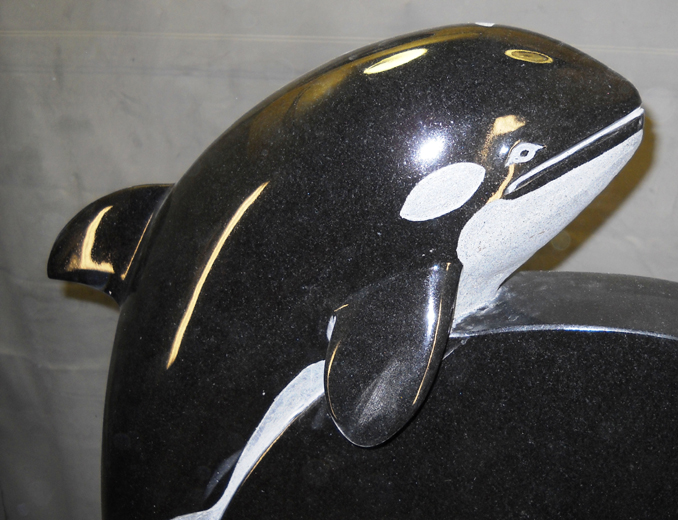 This magnified image of the Killer Whale portion of the funeral memorial showcases the intricate detail of the monument and highlights the level of customization available.