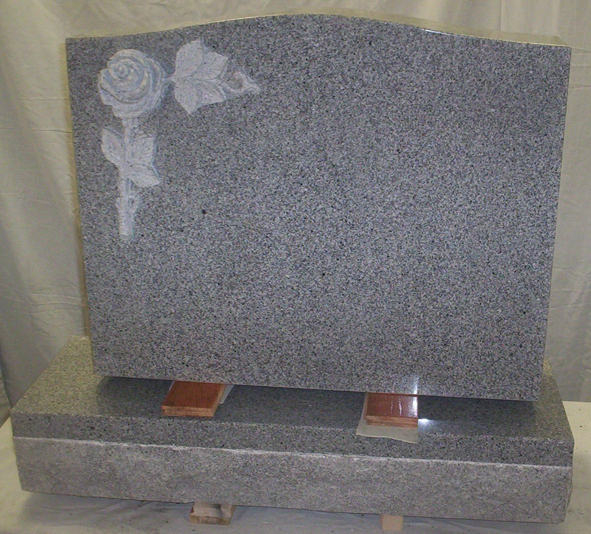 This upright cemetery headstone is pictured in G614 granite , but can be ordered to any size or color.