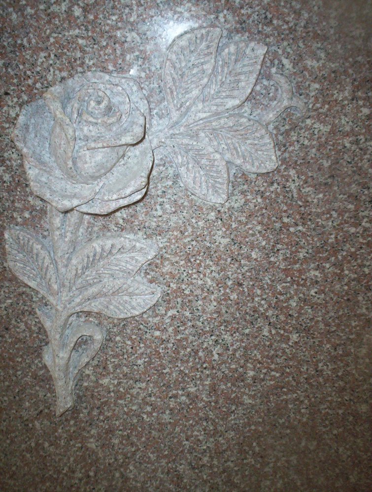 U2 G663 Upright Cemetery Memorial with 3-dimensional flower carving